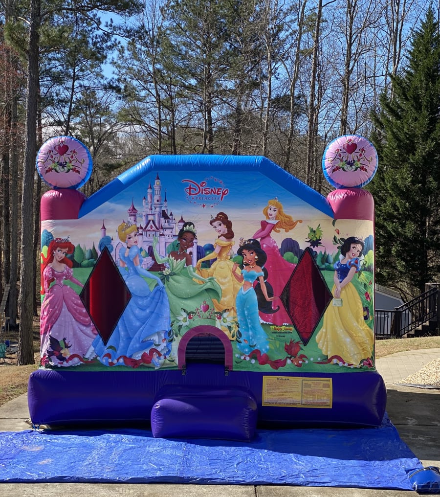 Your Princess will be the life of the party and to share her special day she will have all of the Disney Princess's in tow. This large princess bounce house is everything your child needs to make their party complete.